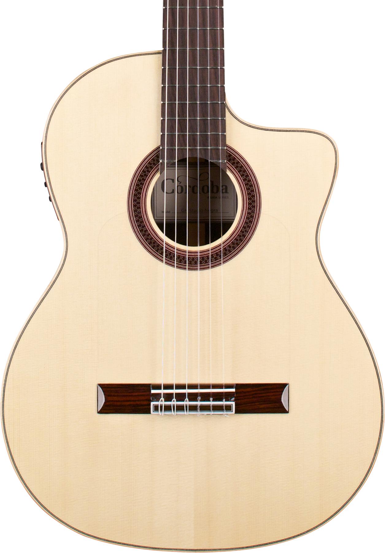 A name that has been making its mark among classical players for many years is the Kremona brand. Its Fiesta FC model is a resonant, affordable and well-built guitar in the classical tradition. More on this Made in Bulgaria model you can find in my article A Guitar from Bulgaria, Anyone? The electric-cutaway variant of this popular option is the Fiesta F65CW which retains the high quality and affordability. Check out this Kremona on Amazon.